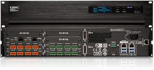 Cuando se instala en "modo I/O Frame", el procesador Q-SYS™ Core 510i ofrece la posibilidad de integrar hasta 128x128 canales de audio en el sistema Q-SYS para realizar las actividades de procesamiento en otro procesador Q-SYS Core. Puede albergar cualquier combinación de tarjetas E/S tipo II de Q-SYS™. Esto es particularmente útil cuando se integra en la plataforma Q-SYS una gran cantidad de canales de audio en red a partir de dispositivos y subsistemas Dante™, CobraNet™ o AVB™.