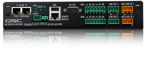 El I/O-22 de Q-SYS es una unidad compacta y autónoma diseñada para su uso cuando las fuentes de audio y los destinos están esparcidos físicamente, como las ubicaciones individuales en un sistema de conferencias o salas individuales en un local con multisalas. Con dos entradas de mic/línea y dos salidas de línea, el I/O-22 es ideal para aplicaciones como cámaras legislativas o judiciales, salas de reuniones, salones de baile, zonas complementarias, aulas, suites VIP e interconexiones de escenario.