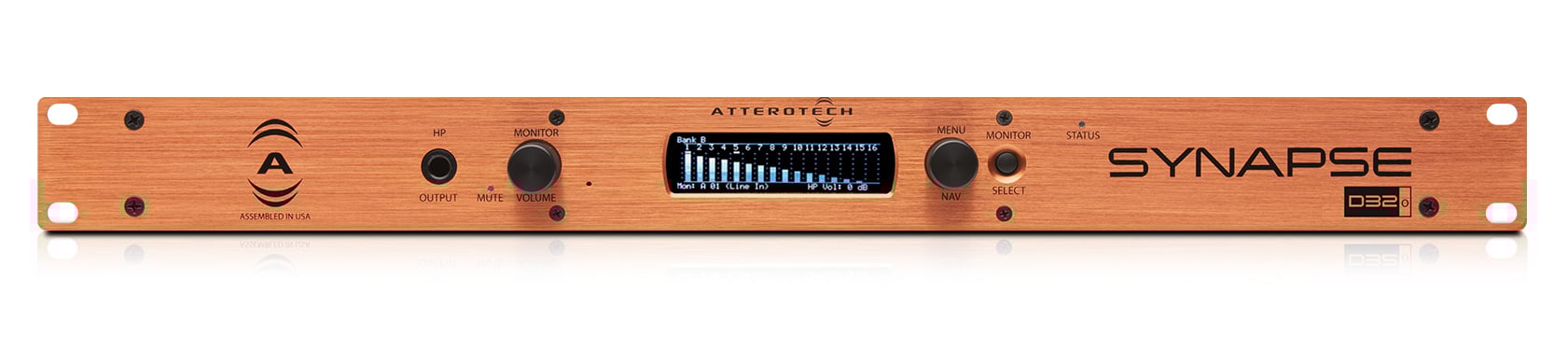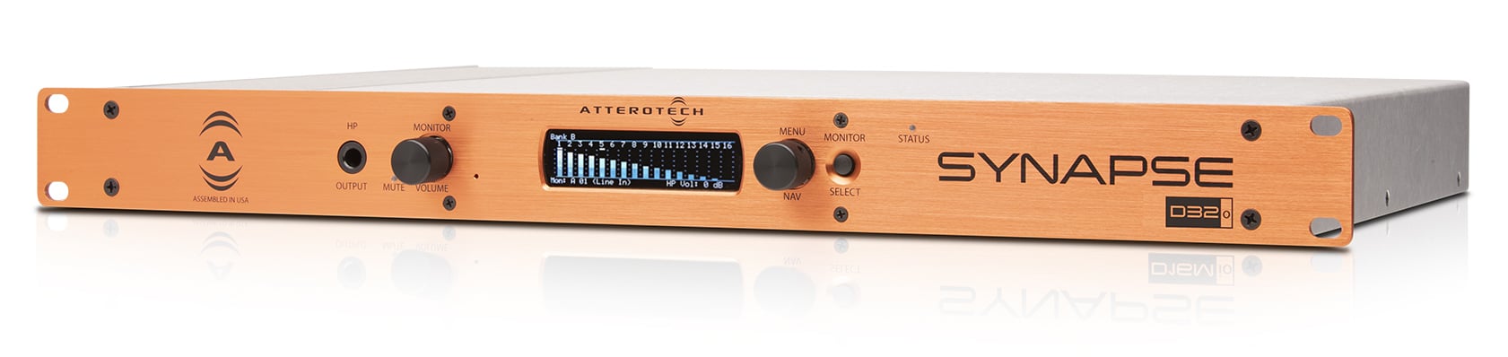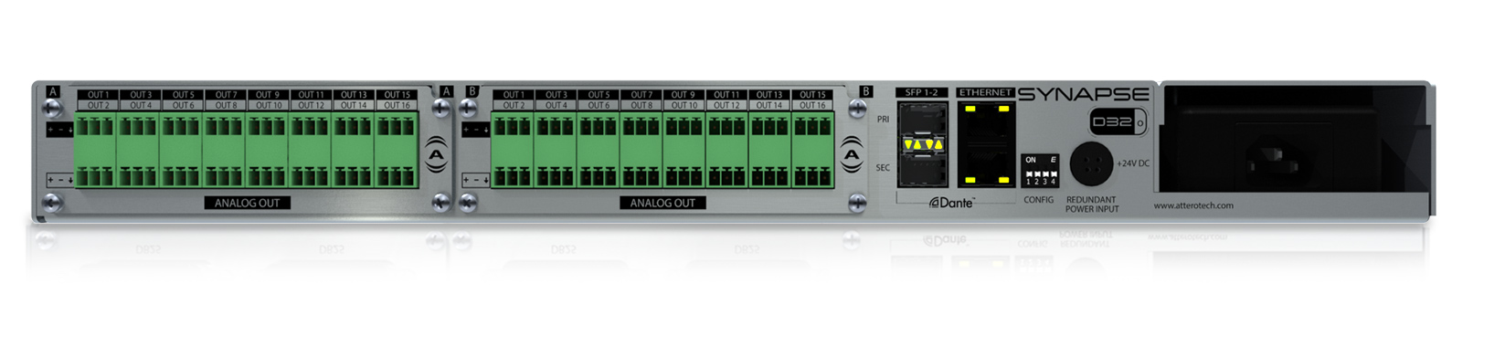- S'associe à la Synapse D32i Attero Tech par QSC pour une extension de signaux audio en réseau de haute qualité, ou pour piloter de grands racks d'amplificateurs d'entrée analogiques