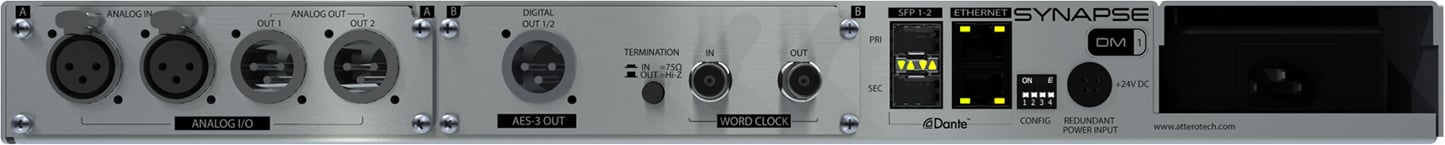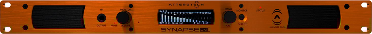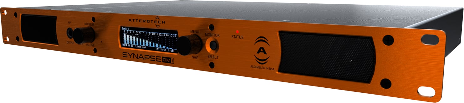 Le Synapse DM1 Attero Tech par QSC est un moniteur audio en réseau rackable, permettant l’écoute de contrôle fidèle des sources audio réseau et locales au casque ou sur les haut-parleurs intégrés à l'appareil. Il est également doté de sorties numériques AES-3 pour la connexion à des enceintes amplifiées large bande ou des amplificateurs, ainsi que de deux canaux d'E/S analogiques pour l’écoute de contrôle des sources locales et la connexion d’E/S au réseau.
