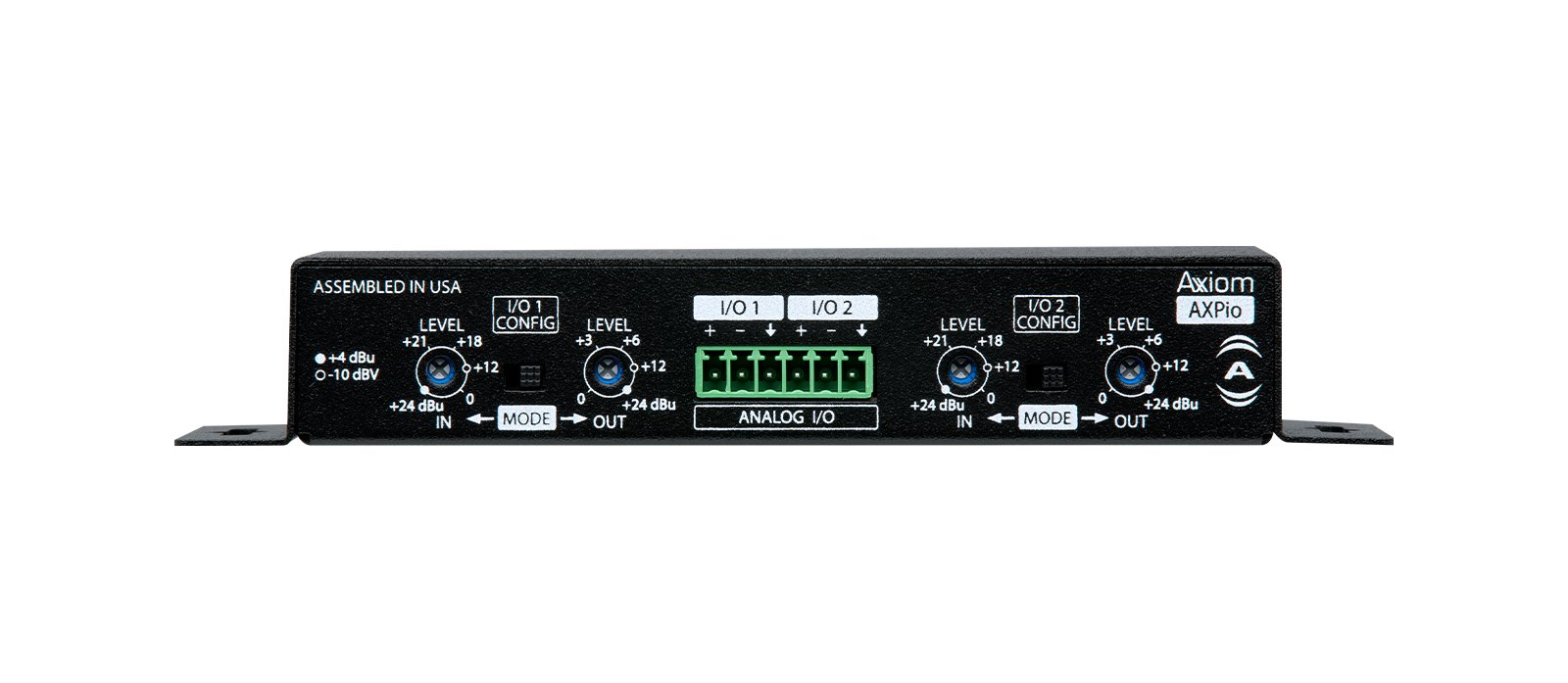 Équipé de deux canaux Flex I/O, l’extension audio Axiom AXPio s’utilise avec une ou deux plaques murales Axiom afin d’intégrer des appareils audio analogiques dans le système audio de votre salle. Chaque extension offre un port RS-232 pour l’intégration du contrôle dans un système audiovisuel en réseau, comme le Q-SYS Ecosystem.