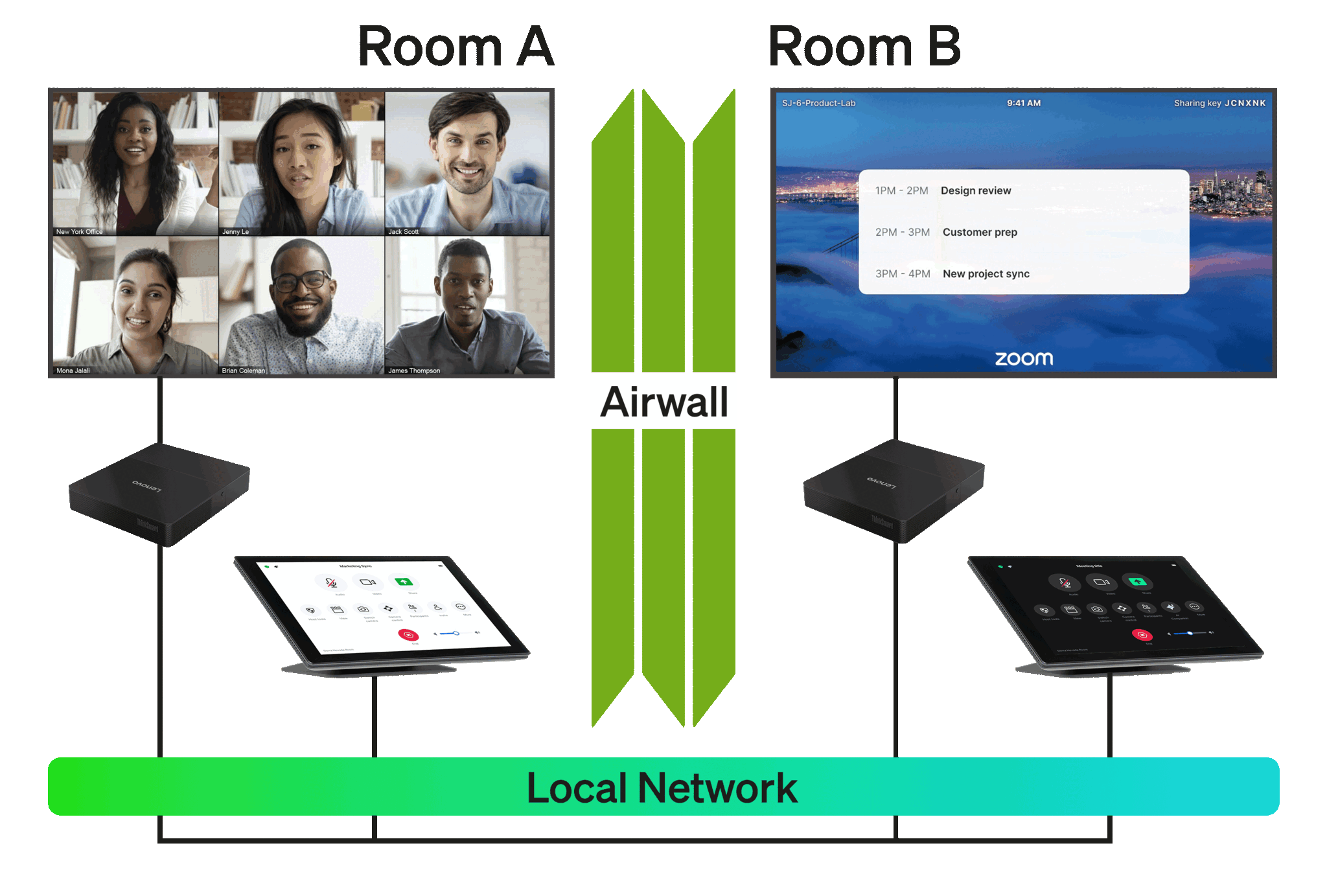 여러 컨트롤러를 단일 Zoom Room에 동적으로 미러링할 수 있으며, 여러 Zoom Rooms를 지원하는 단일 Q-SYS 시스템에서 독립적으로 작동할 수 있는 확장성을 제공합니다. 분할 가능한 회의실, HyFlex 강의실, 대형 회의실과 같이 영향력이 큰 공간에 이상적입니다.
