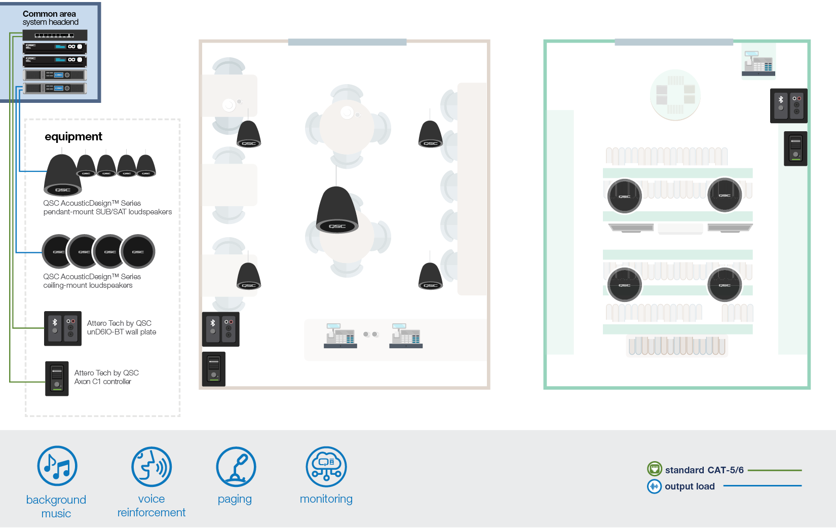 여러 공간에 대한 AV&C 처리를 중앙 집중화 하거나 중차대한 공간에 독립 실행형 AV 시스템을 배포하세요.