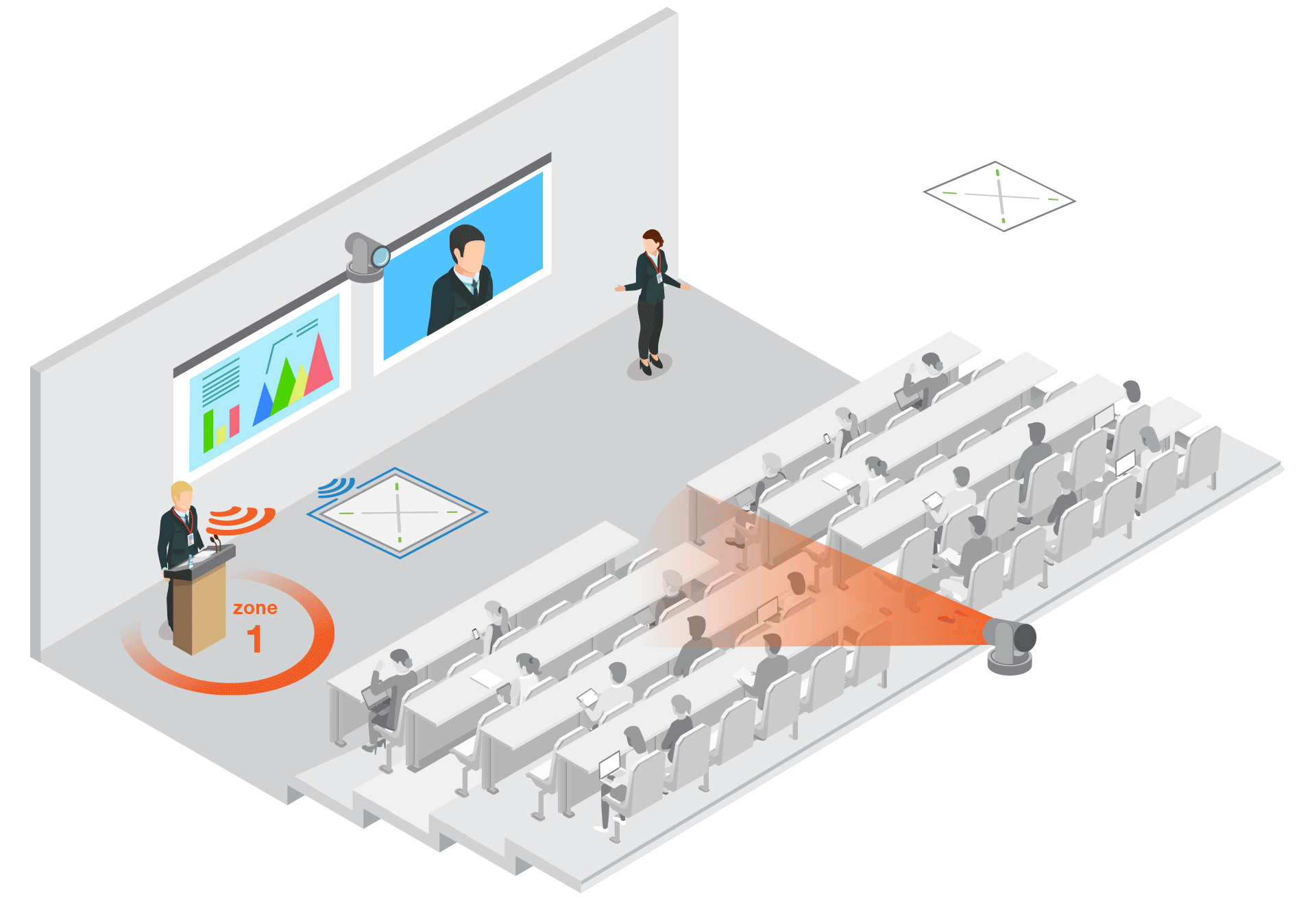 지능형 발표자 추적 또는 자동 카메라 프리셋 리콜을 배포하여 강의실 내 발표자와 학생의 가시성을 개선하고 원거리 학생에게 보다 자연스러운 시청 환경을 제공하면 대화형 및 참여형 원격 학습 환경을 제공할 수 있습니다. 자세히 알아보기