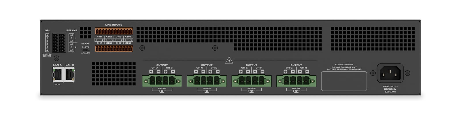- 아날로그, 라인 레벨 오디오 입력 8개, Q-SYS 또는 직접 출력으로 전체 라우팅 가능