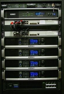 A main rack houses the Q-SYS Core 250i DSP platform, two CXD4.5 four-channel 2000W amplifiers and a pair of four-channel 1400W CXD4.3, plus a CX108V eight-channel amplifier for the 70V system. “I believe we installed one of the first AD-S8T/CXD combinations in the United States and that we were one of the first installers of the advanced CXD amps,” says Kuhl. “. As an early adopter, I did three rooms for Wesleyan University in Connecticut last year using CXD amps. The CXD amps are just terrific.”