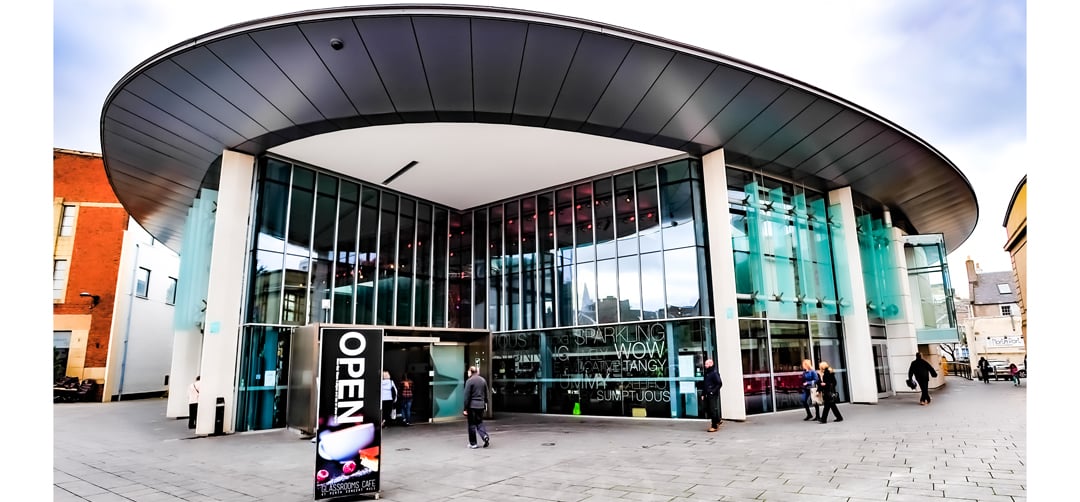 Walking into the foyer the visitor is immediately struck by Scotland’s largest dedicated digital art installation. The foyer displays show a mix of art and advertising (promoting future events) and is fully programmable and linked to a central calendar which controls all the lighting and sound. The busiest room in the venue is the Norie-Miller Suite. The room can accommodate 120 people, or be split into two (for 50 or 60 people), and is home to workshops, music shows and AGMs. AV in here is controlled by panels in the wall. If the team needs to split the room a single button press will instruct Q-SYS the room is now in two. Depending on which code the operator enters into the panel, the operator can access different levels of control. For those events where the tech team needs a bit more control, the consultant specified JLCooper control surfaces, which take command of visuals, light and sound from one custom board. “This is one of the more custom pieces of this project,” says Chris Austin, technical sales manager, Autograph. “The JLCooper control surfaces came as a completely blank canvas, so we had to write our own integration into Q-SYS for that.”