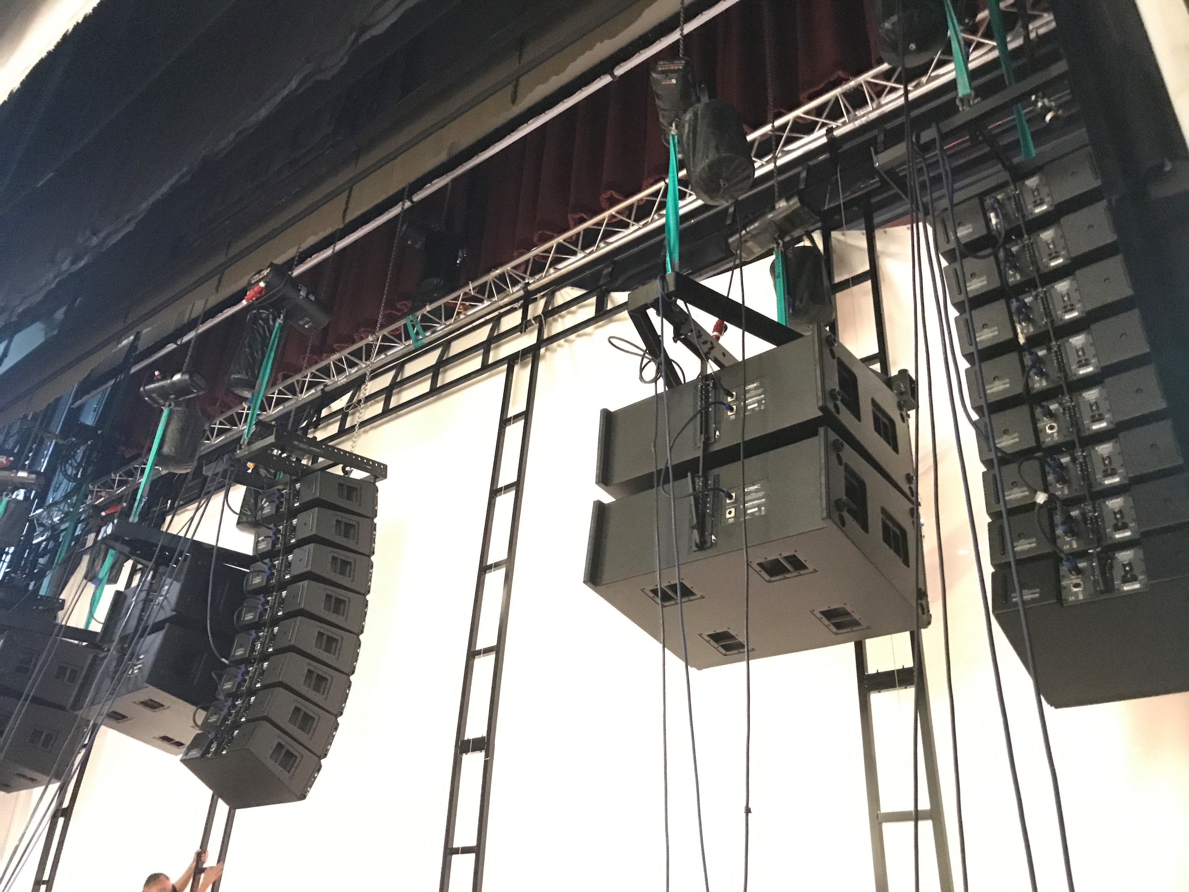 시저의 콜로세움처럼 대극장은 원래 영화관으로 설계되지 않았습니다. 일반적으로 연극 무대 제작에 사용됩니다. 1,000석 이상으로 일반적인 영화관보다 큰 규모이기 때문에 QSC 기술 크루는 콜로세움에서 사용되는 것과 동일한 시스템을 약간 축소한 버전이 최적의 결과를 생성할 수 있다는 것을 깨달았습니다. 좌측, 중앙, 우측 스크린 채널은 스크린 뒤에 매달린 2개의 WL218-sw 서브우퍼와 8개의 QSC WL2102w 라인 어레이로 구성된 3개의 '행'을 통해 전달되었습니다. 화면 하단의 무대 바닥을 따라 8개의 SB-7218 서브우퍼가 확장된 저주파 오디오를 재생합니다. 사운드트랙에 돌비 애트모스 몰입형 오디오가 포함되어 있기 때문에 측면과 후면 벽에 13개의 QSC SR-1590 동축 서라운드 라우드스피커를 설치하고, 오버헤드 몰입형 커버리지를 위해 두 개의 플라잉 트러스 섹션에 10개의 SR-1590을 부착했습니다. 모든 QSC 라우드스피커는 QSC DPA-Q 시리즈 4채널 네트워크 앰프로 구동되었으며, Q-SYS Core 500i 프로세서를 통해 네트워크에서 제어 및 모니터링되었습니다.