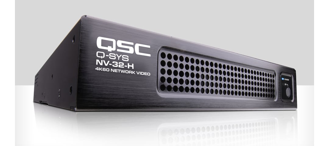 Costa Mesa, Calif. (August 20, 2019) – [De, Es, Fr] – QSC is proud to announce the availability of the Q-SYS™ NV Series (NV-32-H) network video endpoint. This native, multi-stream HDMI encoder/decoder provides high-quality (resolutions up to 4K60 4:4:4), low latency, and network-efficient video distribution across a standard gigabit infrastructure.