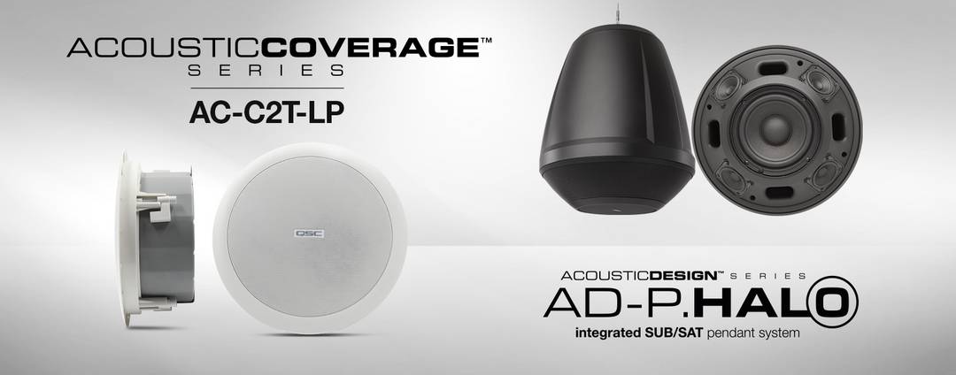 Costa Mesa, Calif. (April 30, 2020) – [De, Es, Fr] – QSC announces its shipping two new loudspeakers – the AD-P.HALO, an integrated SUB/SAT pendant loudspeaker system, and the AC-C2T-LP, a low-profile ceiling-mount full range loudspeaker.